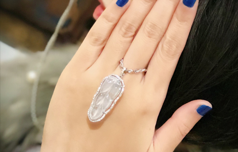 游太太-冰種翡翠葉鑽墜(一夜致富)