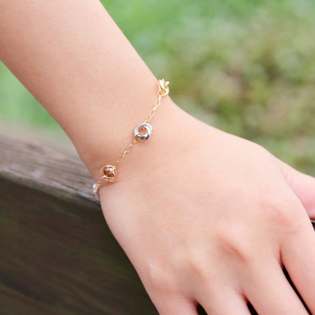 三色14K金三圓圈交疊成三朵抽象的小玫瑰