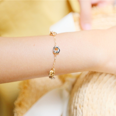小王子說:如果你愛著一朵盛開在浩瀚星海裡的花,那麼,當你抬頭仰望繁星時,便會感到心滿意足。3色14K金三圓圈交疊成3朵抽象的小玫瑰,在拂曉的薄霧中,神秘而柔美,輕聲低訴:我愛你 (三朵玫瑰的花語)。