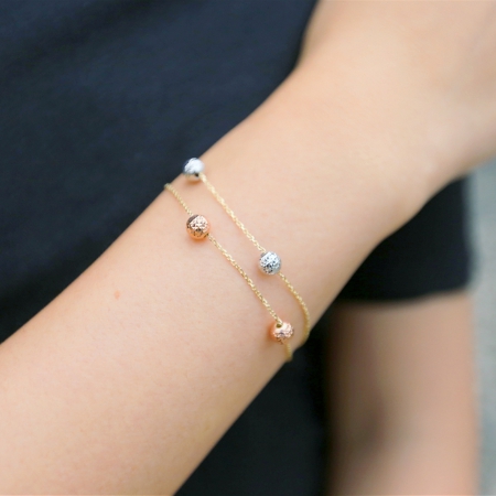 圓,代表圓滿、圓夢、和諧,圓也代表永不結束的愛。鑽石刻紋閃耀璀璨光芒,代表堅定不移,飽滿的玫瑰金及白金色襯托出圓潤、閃耀的光澤,金黃細鍊串起只有戀人之間才懂的絮語,那是屬於戀之間的甜秘密。
